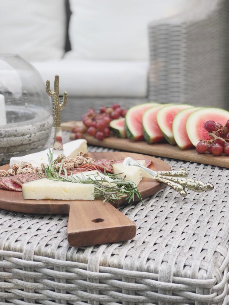 Be ready to serve some snacks as well! I bought this spread from Trader Joe’s! Just strolled through the produce department to find whatever looked the freshest and picked a small variety of cheeses and peppered salami…and voila! If you’re still looking for those perfect serving boards, again, the go-to place is Homegoods or Target!